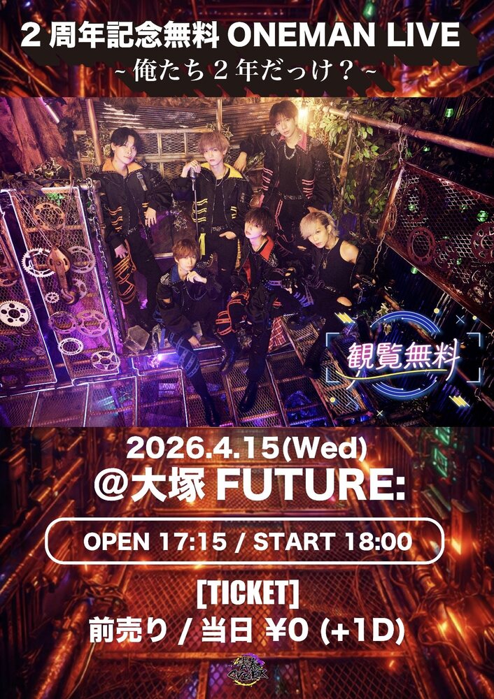 青春CYBER 2周年無料ONEMAN LIVE 〜俺たち2年だっけ?〜 SCHEDULE 2026/04/15(水) 大塚FUTURE ▶︎2026年4月15日(水)▶︎大塚FUTURE:▶︎OPEN 17:15 / START 18:00 ▶︎チケット ¥0 (+1D) チケットはこちらから URLをコピーする 報告する